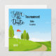 Golfe Salve a data com bola de golfe sobre grama verde