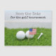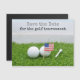 Golfe salve a data com os E.U.A. bandeira e bolas de golfe sobre grama verde