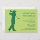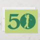 Você pode personalizar todo o texto deste convite de aniversário temático de 50º golfe. Você pode mudar o texto e o número na frente e usá-lo para um 40º, 60º, 70 ou outro aniversário. A design apresenta uma silhueta de um golfista balançando um clube feito para parecer o zero em 50 na frente. Floresta verde e verde limão.