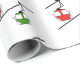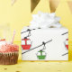 Gôndolas vermelhas e verdes em papel branco de embalagem de Natal.