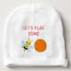 Este chapéu caracteriza um design feliz da abelha e do basquetebol do mel. Mantenha seu pequeno sua cabeça morna com este chapéu bonito do bebê.