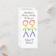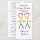 Esta placa de menu plana apresenta um design bonito e elegante para a sua recepção de casamento. O gráfico no topo mostra dois homens, na forma de figuras elegantes de palitos, de mãos dadas. Os números são coloridos num belo arco-íris, simbolizando amor e diversidade. Este menu é uma maneira maravilhosa de trazer um toque coeso e significativo à sua cola enquanto partilha os deliciosos detalhes da sua refeição com os seus convidados.