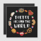 Viagem culinária ao redor do globo. De pizza a sushi, esta trabalho de arte combina pratos icônicos de diferentes países. Perfeito para comida e amantes de viagem.