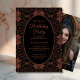 Comemore um aniversário com este elaborado design que ajustado com uma festa de aniversário víbora gótico. Com este modelo personalizável, você pode mudar todos os detalhes e adicionar uma foto atrás. Projetado para aqueles que amam um toque de riqueza com o tom em cores, este convite oferece espaço para uma foto opcional e mensagem personalizada no verso — perfeito para compartilhar memórias ou adicionar mais detalhes.