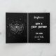 Cartão de aniversário de Gótico preto e branco com a Morte Chefe Hawk Moth e luas e estrelas celestes. Todo texto na frente e no dentro é totalmente editável para adicionar seus próprios nomes e mensagens