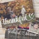 Feliz Dia de Ação de Graças em tipografia serifônica clássica e simples no tema do campo rústico do campo. Adicionar fotos personalizadas da família e nome da família.