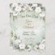 Anuncie seu dia especial com nosso casamento Greenery Greenery Salve o cartão de Data. Este belo design apresenta uma bela mistura de flores rosa brancas e verde fresco de eucalipto, criando uma prévia encantadora de sua próxima celebração. As rosas brancas e as ramificações de eucalipto, de cor aquosa, elegem suavemente a inscrição central com o seu nome, complementando perfeitamente o estilo "boho" do seu tema de casamento. Ideal para noivas com um olho afiado para a elegância, isso economiza o cartão de data sem esforço melhora um esquema verde, branco e dourado, acrescentando um toque de sofisticação à decoração do casamento. Personalize esta design encantadora para torná-la exclusivamente sua e deixar seus convidados anteciparem seu dia inesquecível. Com o seu trabalho de arte floral cativante e estilo elegante, o nosso Graceful Greenery Wedding Save the Date é a forma perfeita para dar o tom à sua ocasião especial.