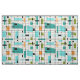 Estes grade e tecido retros de Starbursts são onde o estilo do vintage encontra o dia moderno. Caracteriza um fundo colorido creme com kitschy, fora dos quadrados do kilter e dos retângulos na cerceta, na turquesa, no verde desta luz - azul, alaranjado, e do abacate. Os blocos lunáticos de cor são cobertos são trabalhados em algumas das intersecções da grade. Há igualmente uns retângulos pretos com as linhas verticais e horizontais pretas que formam um teste padrão de grade. Design preto e quadrados do starburst colocados esporàdica durante todo esta tapeçaria moderna do meio século da cor. Agarre o seu ir-vão botas e sino-partes inferiores e apreciam esta reminiscência aos anos 60.