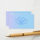 Personalize este cartão de marketing comercial de gradiente de tendência. Isso é perfeito para um negócio de comércio eletrônico, como uma butique, loja Etsy ou qualquer outra pequena empresa. Ele contém a frase "Obrigado pela sua empresa" e tem texto personalizável para explicar mais detalhes. O verso tem logotipo de flor de lótus, saudável e inspirado no bem-estar, que pode ser atualizado ou deixado como está. Este produto expressa a apreciação do cliente e incentiva os compradores a seguirem sua empresa nas mídias sociais com as informações fornecidas ao lado dos ícones de contato do Facebook, Instagram e YouTube.