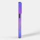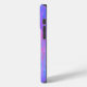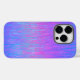 Apresenta um gradiente de listras vívidas, azuis e cor-de-rosa.