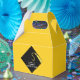 A festa de formatura criativa favorece presentes para a sua classe de mais velho favorita de 25 formandos com boné de formatura preto e fita de ouro em fundo amarelo.