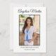 Placa plana de anúncio de fotos de formatura dupla moderna, fofa e cônica, branca, de dois lados para a Classe 2022 ou qualquer ano. Personalize com sua própria foto na frente, seu nome, nome da escola e ano de graduação. Formatado verticalmente. A parte de trás deste cartão tem duas fotos e todos os detalhes que você quiser. Incluir realizações de segundos graus, planos para o futuro, informações de festa de formatura ou qualquer outra coisa que você queira compartilhar. A cor de fundo também é personalizável.