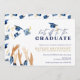 A graduação convida com mãos engraçadas para cima e bonés voadores. Fácil de personalizar com seus detalhes.