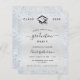 Um convite à festa de formatura moderno, elegante e minimalista. Fundo de aspecto fino prateado decorado com poeira brilhante azul claro. Personalize e adicione um nome, ano e detalhes. Letras pretas coloridas.