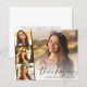 O obrigado moderno de graduação de orçamento que você apresenta a foto do formando sobrepôs-se com uma faixa de três fotos quadradas menores, "obrigado você" em um roteiro de na moda, e o nome, ano escolar e de aula em uma simples tipografia. Ao contrário, personalize um obrigado que você envia e adicione o nome do formando em um script semelhante a assinatura.