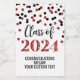 Festa de formatura personalizada mini garrafa de vinho classe de 2024 com padrão de brilho preto e vermelho confetti.