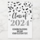 Festa de formatura personalizada mini garrafa de vinho classe de 2024 com padrão de brilho preto e prateado confetti.