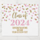 Etiquetas de garrafas de champanhe personalizadas de festa de formatura de 2024 com um padrão de brilho cor-de-rosa e dourado.