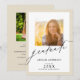 Este elegante convite para formatura apresenta dois quadros de fotos quadrados, um na frente e um segundo no verso. O design é acentuado com o texto moderno do estilo manuscrito. Personalize a parte de trás com os detalhes do seu convite de festas.