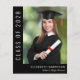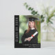 Anúncio de graduação em preto simples e elegante, amigável em termos de orçamento, com tipografia branca moderna. A frente mostra uma foto do seu formando, do ano de aula, do nome dele e da escola. No verso, adicione uma foto adicional, uma mensagem de parabéns e uma mensagem mais pessoal, como os planos futuros do formando.