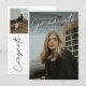 Este convite de graduação de foto elegante e moderno apresenta uma sobreposição de graduado em roteiro e nome, escola e foto personalizáveis na frente. O verso oferece parabéns e detalhes do evento com mais 2 fotos adicionais. Uma ótima maneira de mostrar seu graduado.