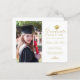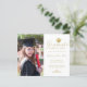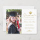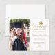 Este elegante cartão de anúncio personalizado de graduação de fotos do orçamento apresenta sua foto à esquerda e à direita um falso boné de ouro com a palavra "Formando", classe/ano, nome e outros detalhes da cerimônia na caligrafia formal de script faux gold para personalizar em um fundo branco. Desenhada por Susan Coffey.