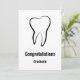 Cartão de graduação plano com ilustração gráfica de um dente dentário.