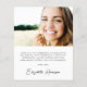 Um cartões de agradecimentos de graduação econômico que apresenta a foto do formando sobreposta com "obrigado você" em um roteiro branco de na moda com baloiços e seu nome e ano de classe na tipografia branca moderna. No verso, adicione uma foto adicional, personalize um obrigado que você envia e adicione seu nome em um script semelhante a assinatura.