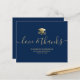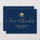 Envie um cartões de agradecimentos de graduação personalizado moderno para sua família e amigos, apresentando uma ilustração de um boné de formatura de ouro e um diploma na frente com um roteiro moderno que diz, "Amor e Obrigados" em falsa tipografia de ouro com seu nome, escola e classe/ano abaixo em um fundo azul de marinho. A parte traseira do cartão tem uma mensagem que você pode personalizar ou excluir. Desenhado pela artista ©Susan Coffey.