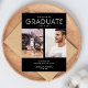 Comemore sua graduação com este cartão de anúncio da graduação moderna de duas imagens. Personalize com duas fotos de seu mais velho, o nome e o nome de sua escola. Informações adicionais podem ser adicionadas à parte inferior do anúncio, como os planos do colégio do formando ou detalhes do convite de festas. Essa placa de lançamento da graduação de 2023 reverte para um negro coordenador no verso.