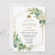 Este convite inclui ouro e flores beges com folhas verdes, entalhes de eucalipto. É perfeito para a festa de formatura!