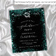 Um convite moderno e elegante para a festa de formatura. Um fundo preto decorado com poeira brilhante verde e lacrimejante. Personalize e adicione um nome, ano e detalhes.