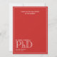 Um anúncio de graduação de PhD em foto que inclui seu nome, ano de aula, nota de obrigados e muito mais. A frente do anúncio mostra uma foto vertical. O outro lado tem um fundo vermelho. Troque a foto, personalize as palavras, adicione o anúncio ao seu carrinho, e deixe que todos saibam que você fez algo grande. <i>Fotografia © Storytree Studios, Stanford, CA</i>