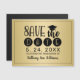 Anuncie sua formatura para sua família e amigos com esta imã salve a data elegante. Este design apresenta um design de tipografia moderno em preto sobre ouro falso, acentuado por um boné de formatura. A frente do cartão-postal diz "Salvar a Data para comparecer à formatura" com a data e o nome para você personalizar. Parabéns pela sua formatura! Desenhado pela artista ©Susan Coffey.