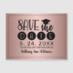 Anuncie sua formatura à sua família e amigos com esta imã salve a data elegante. Este design apresenta um design de tipografia moderna em preto sobre ouro rosa, acentuado por um boné de formatura. Na frente do cartão-postal lê-se "Salvar a Data para comparecer à formatura de" com a data e o nome para você personalizar. Parabéns pela sua formatura! Desenhado pela artista ©Susan Coffey.