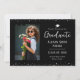 Classic Elegant mortar graduation hat graphic with modern script font graduation announcement postcard. Black and silver design.