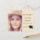 On front: Add your own vertical size photo of the graduate. A chic champagne colored background, black text. Templates for a name and date. The name and the text: Save the Date are written with a modern hand lettered style script. With a cap, tassel topper.