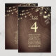Guie seus convidados com estilo com este cartão de gráfico de assentos de casamento de madeira rústica, apresentando luzes de corda brilhantes e sutilhas douradas elegantes. Projetado para casamentos de outono, boho, celeiro ou floresta, este cartão de número de mesa personalizado duplica como um display de lista de convidados elegante. Um detalhe encantador que adiciona calor e sofisticação à decoração da sua recepção.