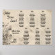 Elegante poster de gráfico de temas florais, texto modelo para seis mesas com nomes de convidados.