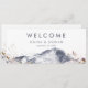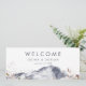Este simples cabeçalho de boas-vindas de assentos de montanha floral é perfeito para um casamento ao ar livre. O moderno design minimalista apresenta uma montanha azul de aquarela marinho com flores silvestres de queda cor rosa-pincelada. A placa impressão na frente e atrás (lado duplo). Verifique a coleção de placas de números de tabela de coordenação.