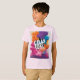 No centro da camiseta, há uma representação ousada e vibrante de uma faixa de médio, com uma expressão alegre em seu rosto. Atrás do corredor, uma explosão dinâmica de plasmas multicoloridas se espalha para fora, simbolizando o entusiasmo e a energia do evento Color Run. O fundo da camiseta desaparece do branco no topo para um gradiente macio de tons pastéis no fundo, criando um sentido de movimento e transição. Na borda inferior, o logotipo do evento é sutilmente incorporado, com o nome do evento na tipografia lúdica e estilizada. Elementos adicionais como confete, pinceladas de pincel ou formas de abstrato podem ser espalhados ao redor do design, adicionando à atmosfera festiva. A composição geral deve se sentir dinâmica, viva e cheio de alegria, capturando a essência da experiência de execução de cores.