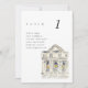 Cartões com números de mesas de casamento em chic, com uma pintura em aquarela da Biblioteca Pública do Nova Iorque. O emparelhamento da aquarela pareada com a tipografia quic faz uma combinação maravilhosamente divertida.