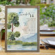 Gráfico de assentos da mesa de casamento Lake Evergreen Watercolor com o número e a lista de convidados em uma paisagem cênica idílica. O número da tabela e a lista de assentos de convidado são editáveis e exibidos em ambos os lados. Paisagem com árvores verdes e verdes, montanhas azuis e um lago ainda sob um céu azul claro. A design está em tons de azul empoeirado, marrom-reluzente e verde e é escrita com elegância e tipografia moderna. Por favor, procure na minha coleção Lake Evergreen itens correspondentes ou envie-me uma mensagem para criar os modelos de que necessita.