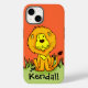 Um grande caso de gato de leão bonito com um céu laranja para seus filhotes. Criada e pintada exclusivamente por Sarah Trett para www.mylittleeden.com