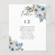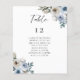 Número da mesa de casamento floral azul empoeirada Elegante e gráfico de assentos com lista de convidados