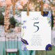 Torne fácil para seus convidados de verão encontrar seu lugar com esses cartões de números de tabela de cores na moda elegantes. Com um belo roteiro de tipografia personalize a noiva e os nomes dos noivos e a data do casamento usando modelos fáceis de usar. Primavera de boho único e flores silvestres de verão, incluindo flores, papoilas, cosmos, esqueçam-me os nãos com folhagem delicada pintada pela artista Catherine Sweetman em azul de córnflor, azul esbranquiçado, azul marinho, roxo e verde. Ideal para o café da manhã do casamento, janto de ensaio ou dia do janto do casamento. Material de casamento igual disponível na suíte de casamento azul de flor silvestre moderna.