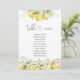 Gráfico de Número de Sentos da Tabela de Citros de Limão e Verde. Este na moda e elegante Convite para Chá de Casamento apresenta uma linda cor d'água, Lemon e Greenery Citrus Floral. Encontre itens correspondentes na Coleção Floral de Citros Limão e Verde.