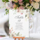 Um belo cartão floral cor-de-rosa pincelado e de mesa de marfim para a sua recepção de primavera ou jardim. Personalize com os nomes de seus convidados e o número da mesa usando nossa ferramenta personalizada sob o buquê romântico de pêssegos e flores de creme aquarela.