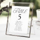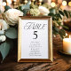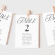 Gráfico simples e elegante de assentos de casamento, com "mesa", exibido em um estilo moderno de tipografia negra, com o número da tabela e os nomes de convidados mostrados abaixo. O design repete atrás. Para solicitar o gráfico de número de tabela, edite cada cartão com o número da tabela e os nomes de convidado e adicione-o ao carrinho.