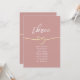 Cartão de mesa de rosa de casamento empoeirado minimalista com um coração de corda de ouro romântico e caligrafia elegante. Projetado com um número de tabela moderno no topo e uma lista de nomes de convidados abaixo. Perfeito para organizar sua recepção em estilo. Combina uma variedade de casamentos cor-de-rosa, pincelados ou dourados com uma estética suave e moderna.